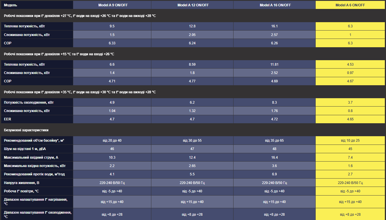 Be the first to review “Тепловой насос для бассейна Aquaviva Model А 6 ON/OFF (6,3 кВт), 220 В, обьем бассейна до 25 м³”