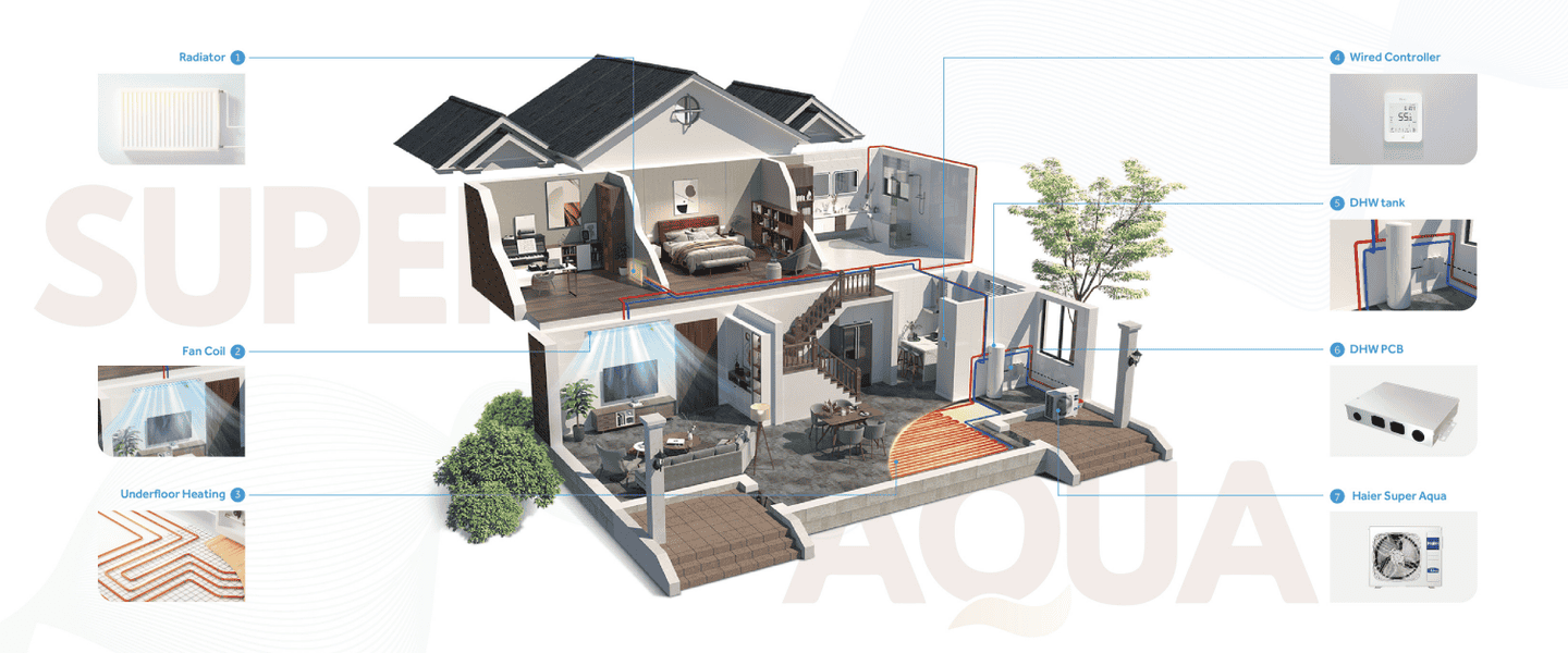 Haier Super Aqua Monobloc — это инновационная система воздух-вода, сочетающая высокую энергоэффективность, надежность и экологичность. Он предназначен для создания комфортного микроклимата в жилых и коммерческих помещениях, обеспечивая эффективное отопление, охлаждение и нагрев горячей воды в течение всего года.