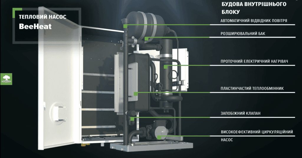Модель Mycond BeeHeat — это сплит-система, состоящая из внешнего и внутреннего блоков. Внешний блок отличается компактными размерами, что упрощает и ускоряет процесс монтажа всей системы. Важным преимуществом является его совместимость с существующими системами отопления, что делает интеграцию теплового насоса легкой и удобной. Такая система отопления обеспечивает надежность и экономичность в эксплуатации.