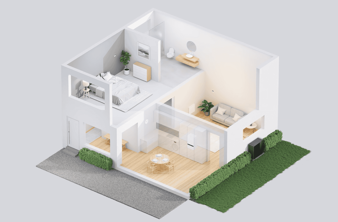 • Зовнішній блок у кольорі антрацитово-сірий, розроблений з урахуванням естетики сучасної архітектури.