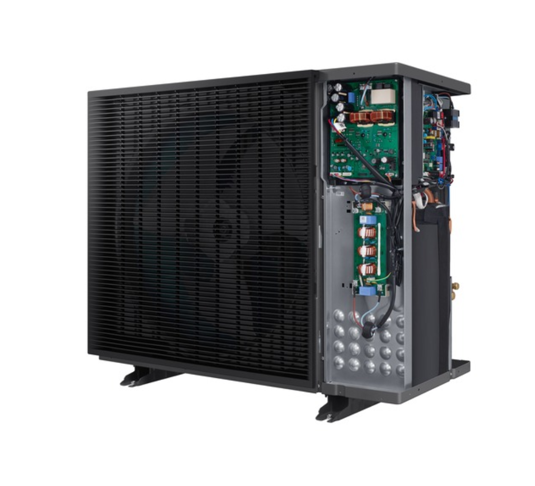Система способна подавать воду с температурой до 65 °C для отопления радиатора даже при –5 °C снаружи, и до 55 °C для горячей воды бытового назначения. Это уменьшает потребность в дополнительном нагревателе. Компрессор Twin Rotary эффективно передает тепло и работает на высоком давлении.