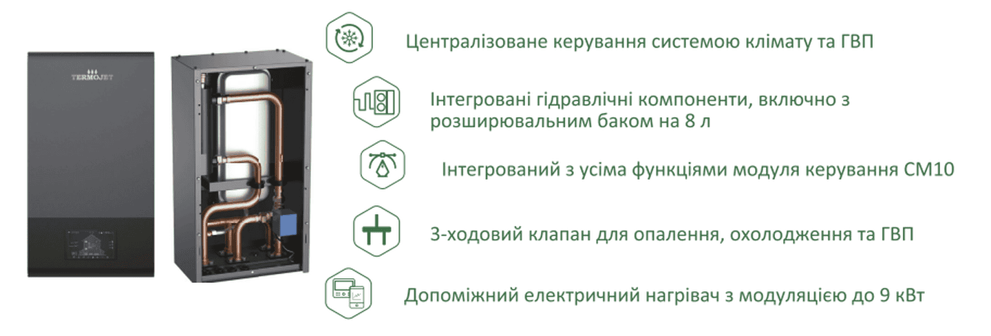 Тепловой насос Termojet Hi-Master V 160HCR5TINVM2V с модулем управления HS10 — это современное решение для отопления, охлаждения и обеспечения горячей водой жилых домов площадью до 160 квадратных метров. Он соответствует новейшим европейским стандартам энергоэффективности и работает очень тихо, поэтому не создает дискомфорта для жильцов и соседей.
