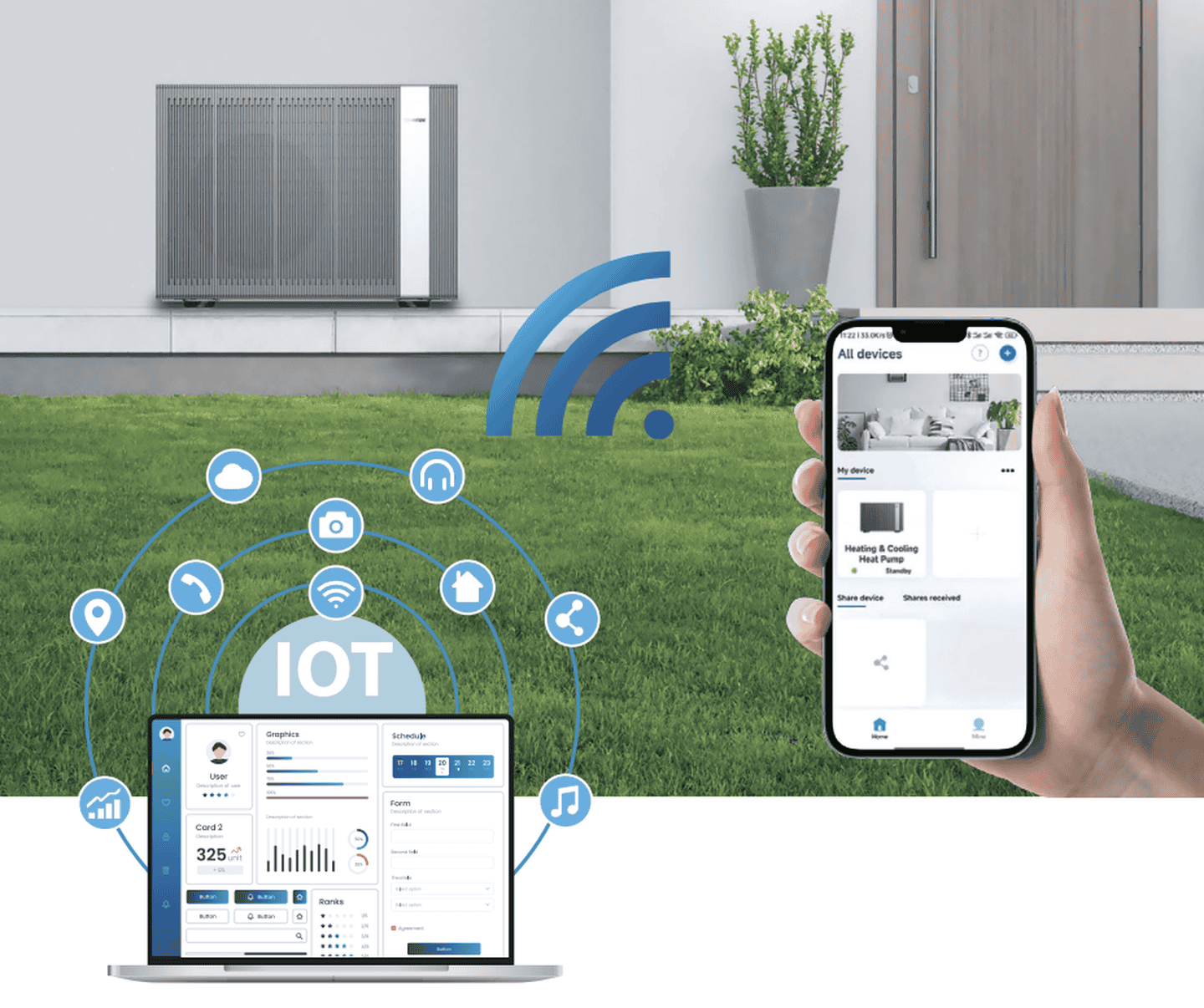 Благодаря стильной металлизированной серой отделке и плавным линиям, тепловой насос серии Hi-Master V гармонично вписывается в любой архитектурный стиль — от современных квартир до кирпичных домов и классических вилл. Его элегантный дизайн удачно дополняет пространство и улучшает его внешний вид.