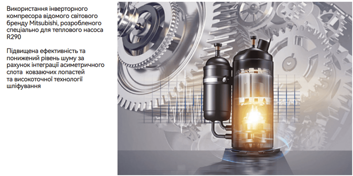 ДОПОЛНИТЕЛЬНЫЕ ПРЕИМУЩЕСТВА: Работа при -25°С, встроенный WI-FI, компрессор Mitsubishi, гидромодуль с баком ГВП 200 л