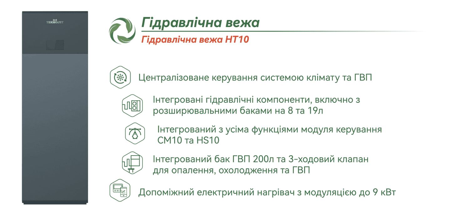 Тепловой насос Termojet Hi-Master V 90HCR5INVM2V с модулем управления HT10-1 — это современное решение для отопления, охлаждения и обеспечения горячей водой жилых домов площадью до 90 квадратных метров. Он соответствует новейшим европейским стандартам энергоэффективности и работает очень тихо, поэтому не создает дискомфорта для жильцов и соседей.