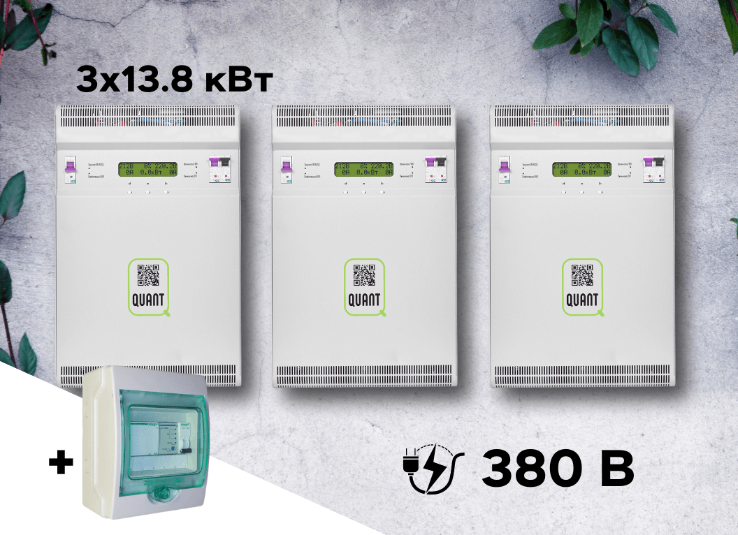 Трехфазный Quant-42 инверторный стабилизатор напряжения настенный, мощность 41.4 кВт (3х13.8 кВт) на 380V (Квант)