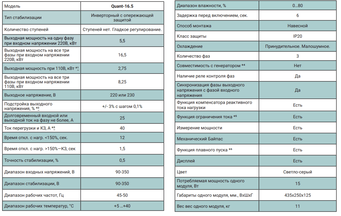 Трехфазный стабилизатор напряжения Quant-16,5 – это три однофазных инверторных стабилизатора напряжения Quant-5,5, которые работают в паре с блоком контроля фаз. Главное отличие трехфазных стабилизаторов напряжения Quant от обычного трехфазного стабилизатора с синхронизатором в том, что он не блокирует работу однофазных потребителей даже, если по каким-то причинам отсутствуют две фазы.