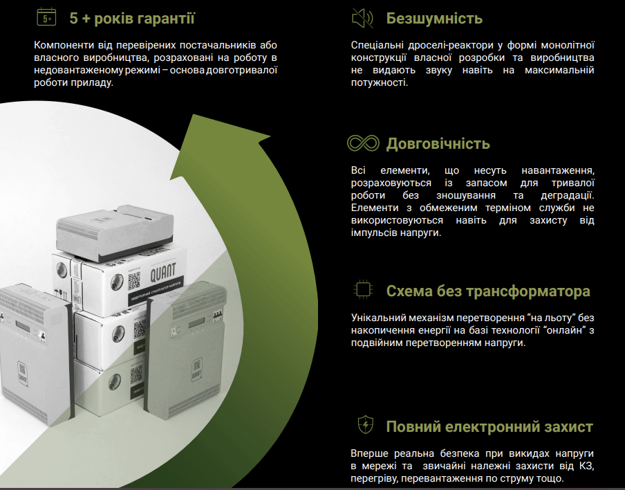Стабилизатор QUANT является надежным решением для обеспечения стабильного электропитания, предотвращая повреждения электроники и обеспечивая бесперебойную работу подключенных устройств.