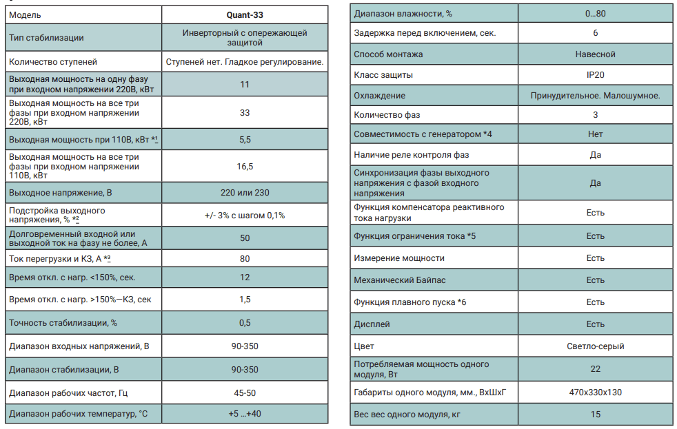 Трехфазный стабилизатор напряжения Quant-33 – это три однофазных инверторных стабилизатора напряжения Quant-11, которые работают в паре с блоком контроля фаз. Главное отличие трехфазных стабилизаторов напряжения Quant от обычного трехфазного стабилизатора с синхронизатором в том, что он не блокирует работу однофазных потребителей даже, если по каким-то причинам отсутствуют две фазы.