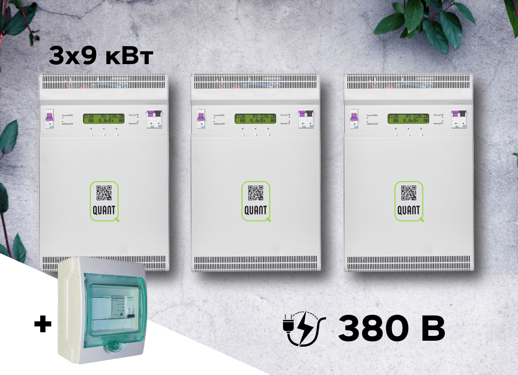 Трехфазный Quant-27 инверторный стабилизатор напряжения настенный, мощность 27 кВт (3х9) на 380V (Квант)