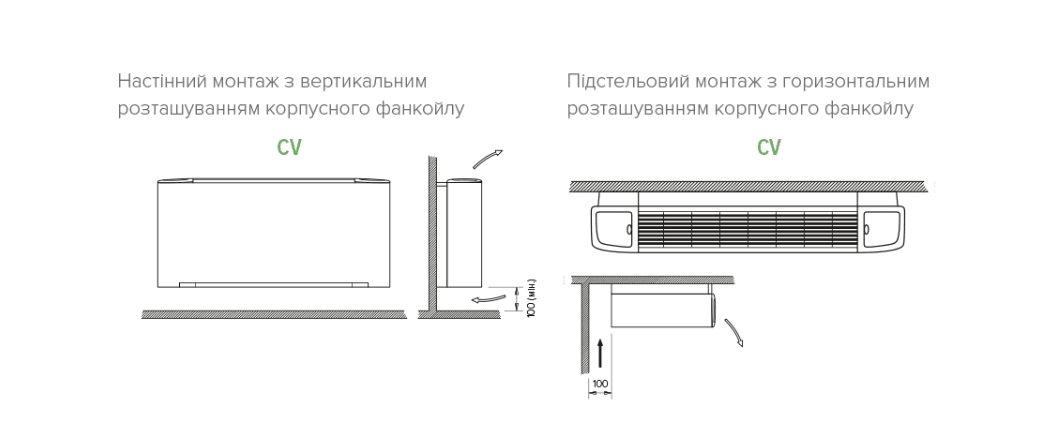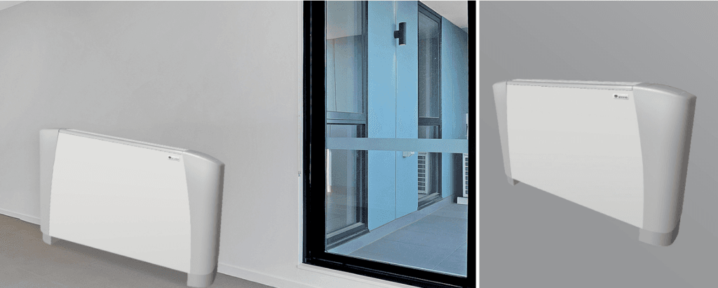 Вертикальное или горизонтальное исполнение: Фанкойлы могут быть установлены как вертикально, так и горизонтально, обеспечивая гибкость в выборе расположения.