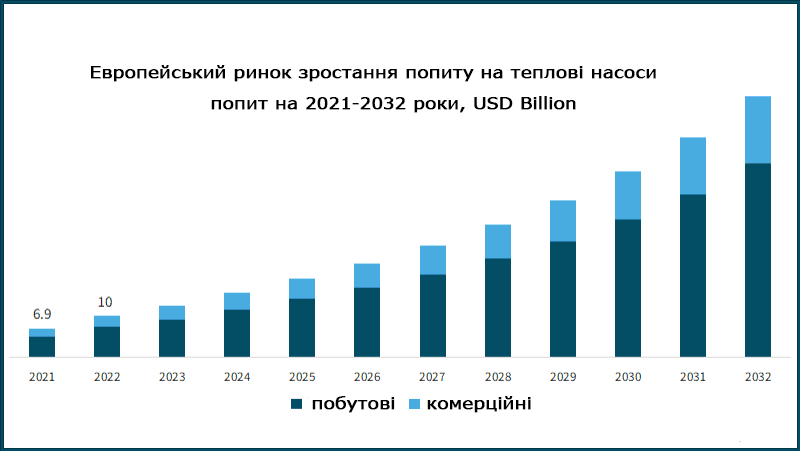 Растущая потребность в энергоэффективных установках в жилых и коммерческих зданиях, вместе с постоянным переходом от существующих систем отопления к системам с низким содержанием углерода, будет способствовать росту отрасли. Кроме того, значительные различия в климатических условиях во многих странах, вызванные повышением загрязнения и уровня глобального потепления, вместе с растущим спросом на улучшенные технологические системы тепловых насосов, привели к ускоренному развитию производства тепловых насосов в мире.