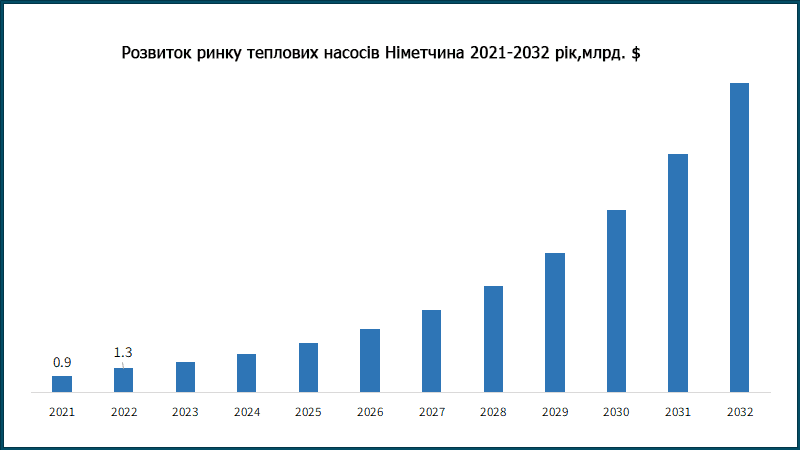 Рынок тепловых насосов воздух-вода в Германии превысил ставку в размере 900 миллионов долларов США в 2022 году и предполагается, что до 2032 года он будет наблюдать значительный рост. Развитие коммерческой и жилой инфраструктуры, а также устойчивые экономические условия в стране будут иметь большое влияние на перспективы отрасли. Подходящая правительственная политика вместе с введением финансовых планов, включая финансовую помощь, субсидии и налоговые льготы, являются несколькими параметрами, которые стимулируют использование продукта.