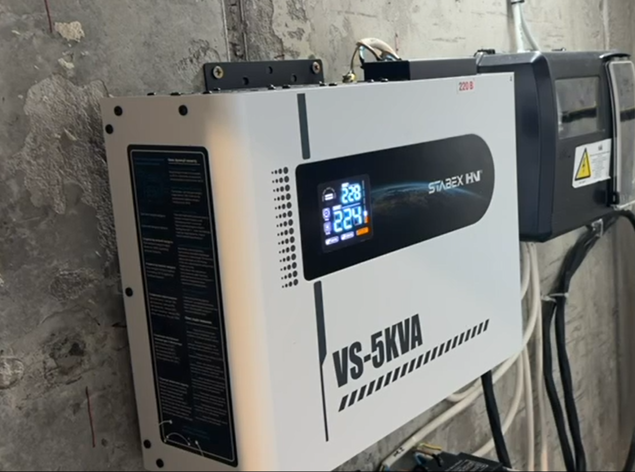 Стабилизация напряжения: Для каждой из трех фаз, питающих квартиру и тепловой насос, установлен отдельный стабилизатор Stabex (Стабекс) VS-5KVA мощностью 5 кВт.