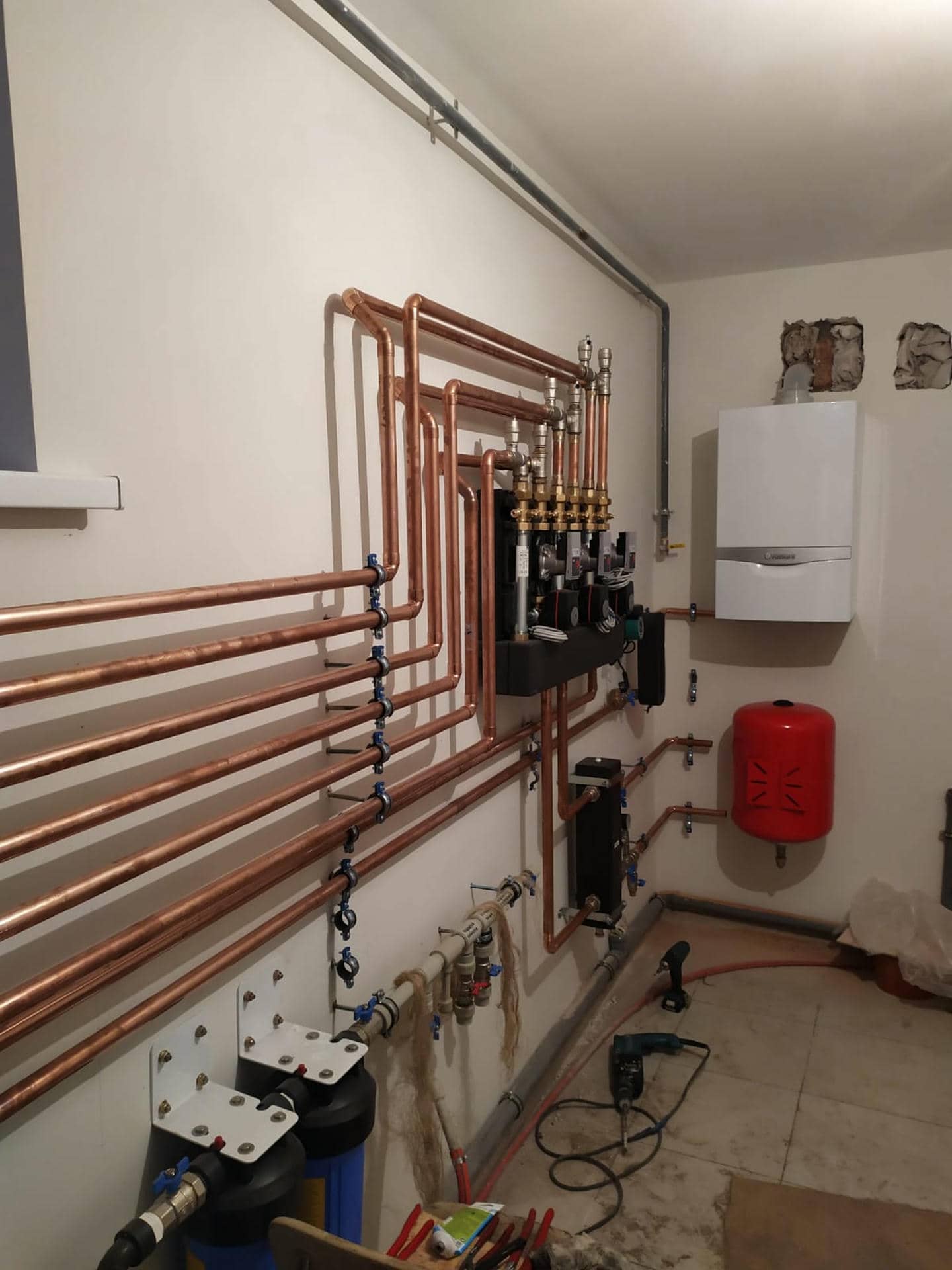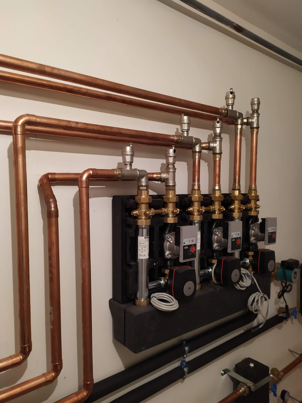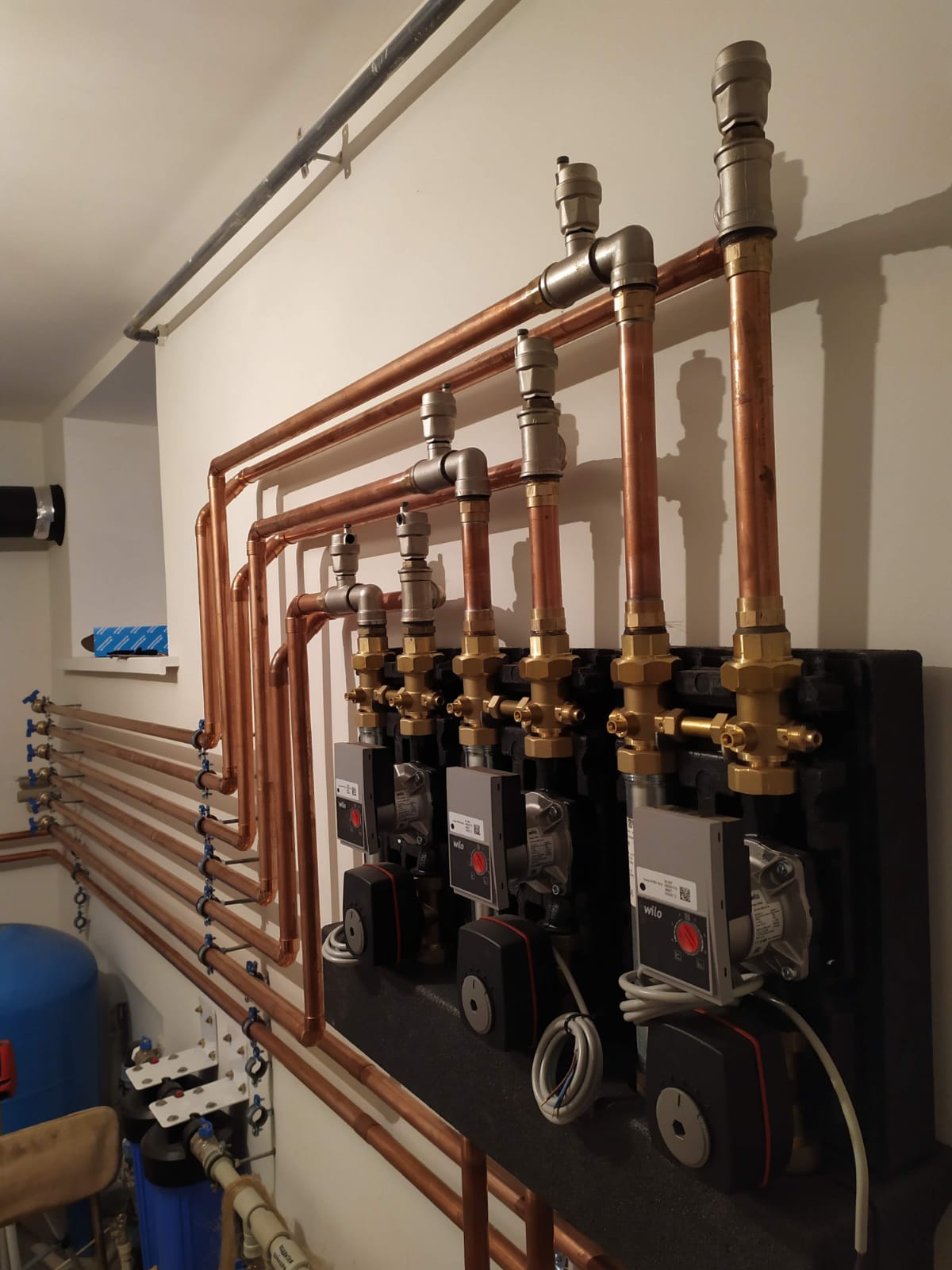 Установка коллектора и гидрострелки HERZ: Коллектор и гидрострелка были установлены для равномерного распределения тепла по радиаторам и оптимизации работы системы.