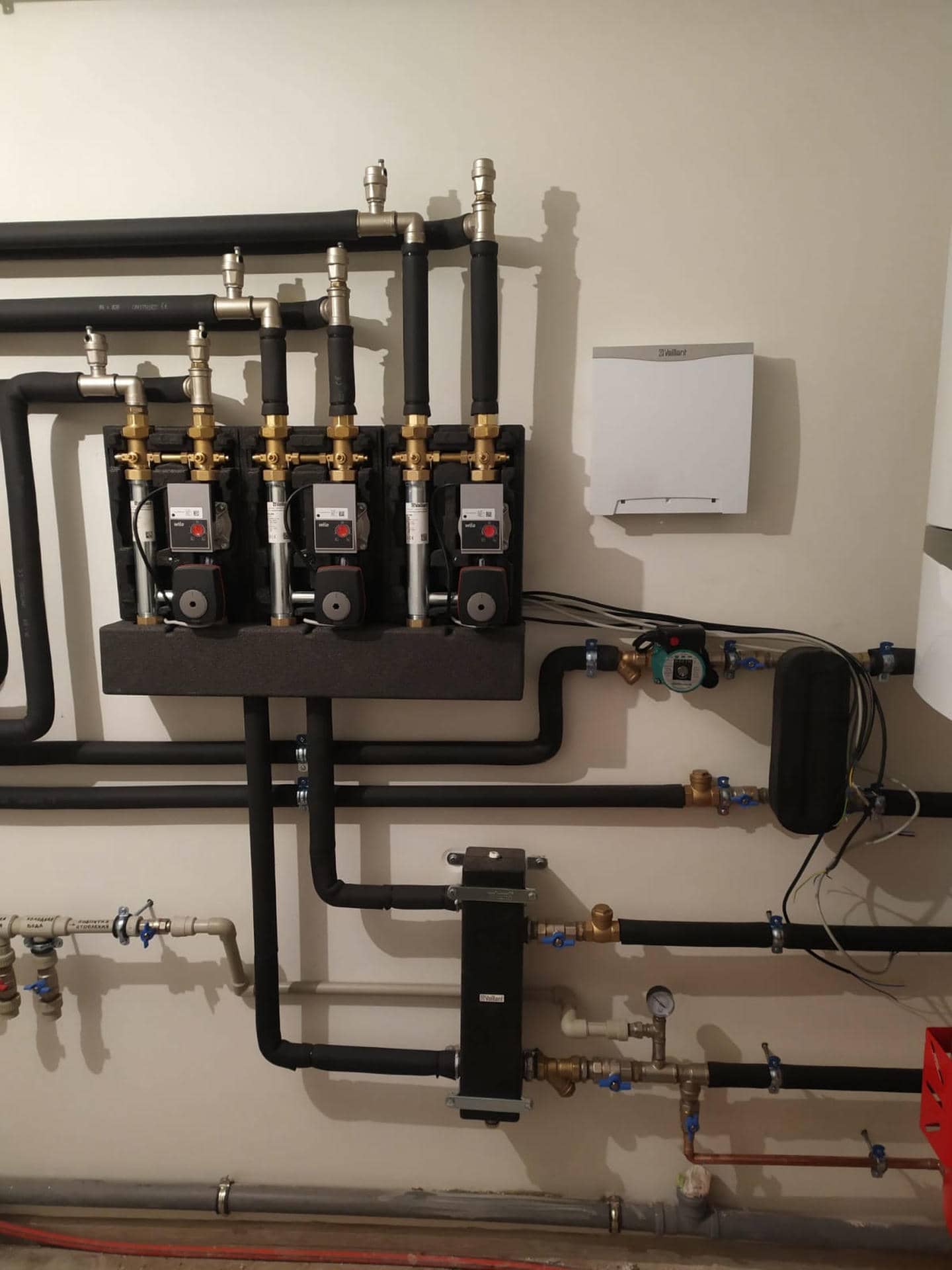 Установка насосных групп: Подключены насосные группы, обеспечивающие циркуляцию теплоносителя по системе отопления.
