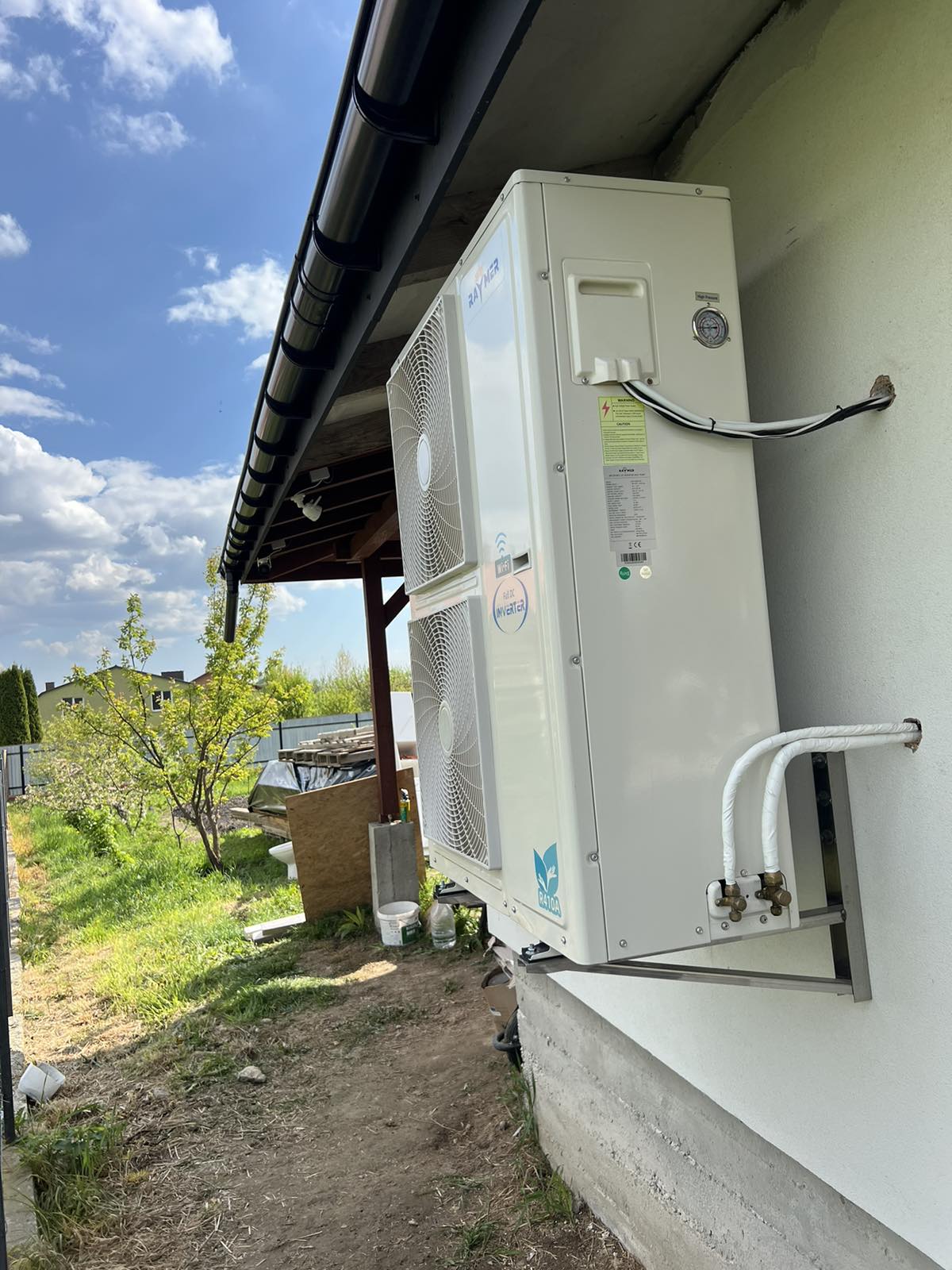 Для решения этой задачи было принято решение о монтаже теплового насоса воздух-вода Raymer RAY-15DS1 EVI, который известен своей высокой энергоэффективностью и способностью работать в широком диапазоне температур: