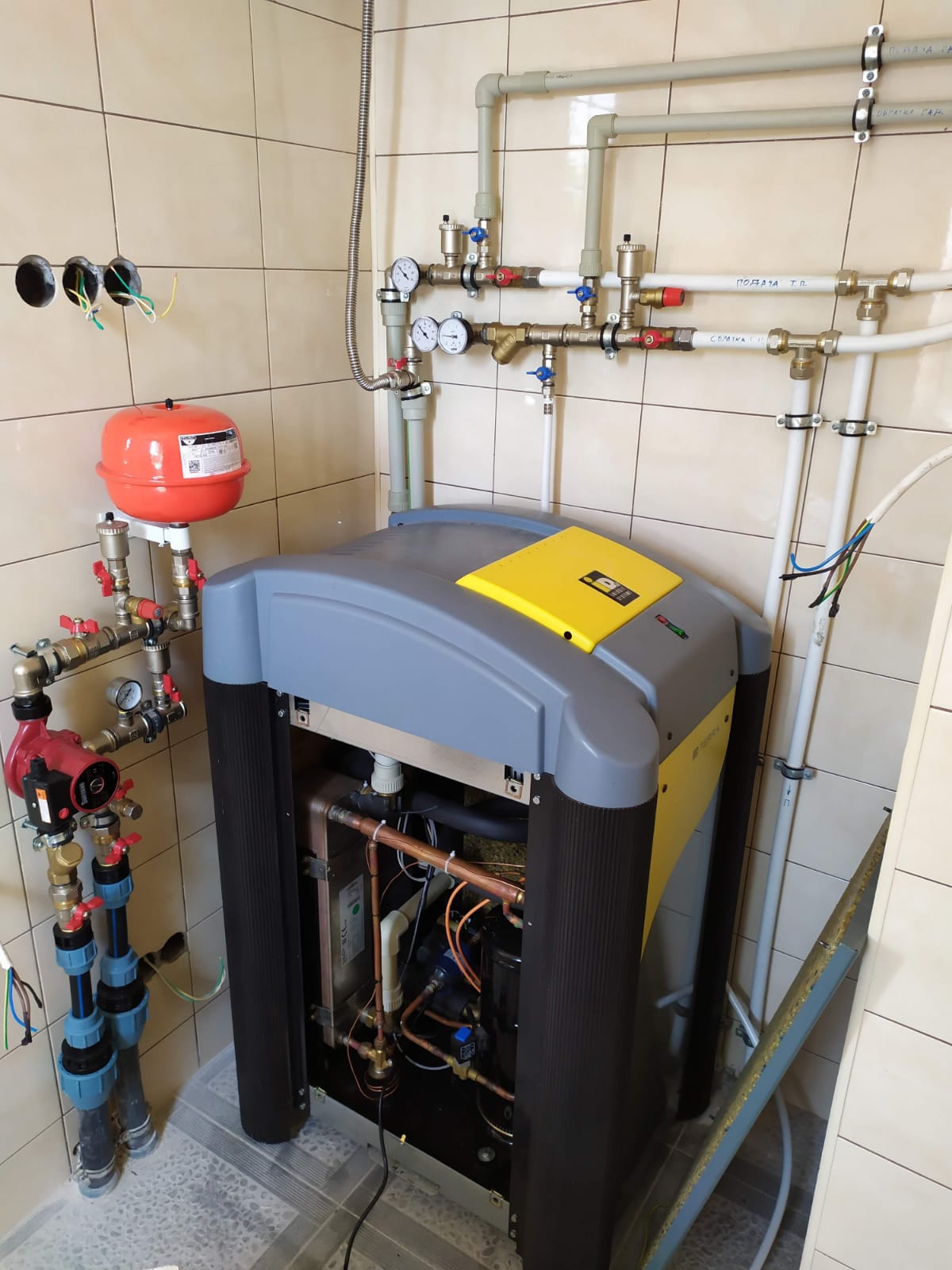 - Монтаж геотермального теплового насоса: Тепловой насос был установлен на заранее подготовленное место. Провели прокладку трубопроводов и подключение насоса к системе отопления.