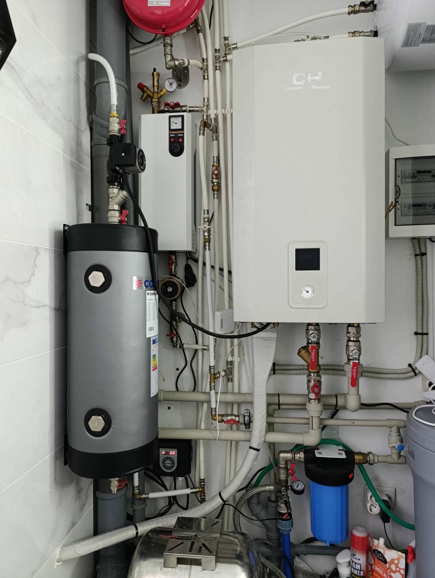 Внутренний блок теплового насоса Cooper&Hunter CH-HP10SIRK-E был установлен в котельной, где уже находится электрокотел, который до этого времени был главным источником отопления.