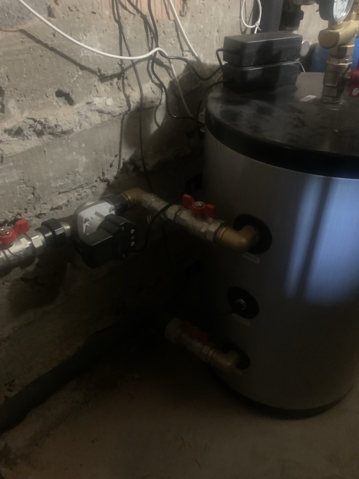 К баку подключен инверторный циркуляционный насос Raymer T8-139W, который регулирует скорость потока в зависимости от температуры, поддерживая оптимальную температуру в системе теплого пола и радиаторов.