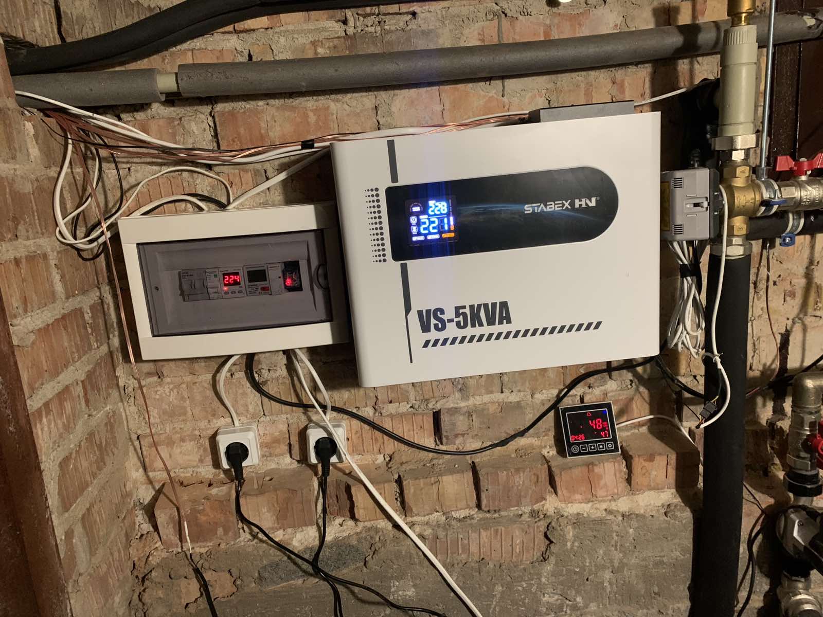 Поскольку стабильность напряжения является критически важной для работы компрессора теплового насоса, в систему дополнительно интегрирован стабилизатор напряжения Stabex VS-5KVA, который защищает оборудование от перепадов электроэнергии и продлевает срок его службы.