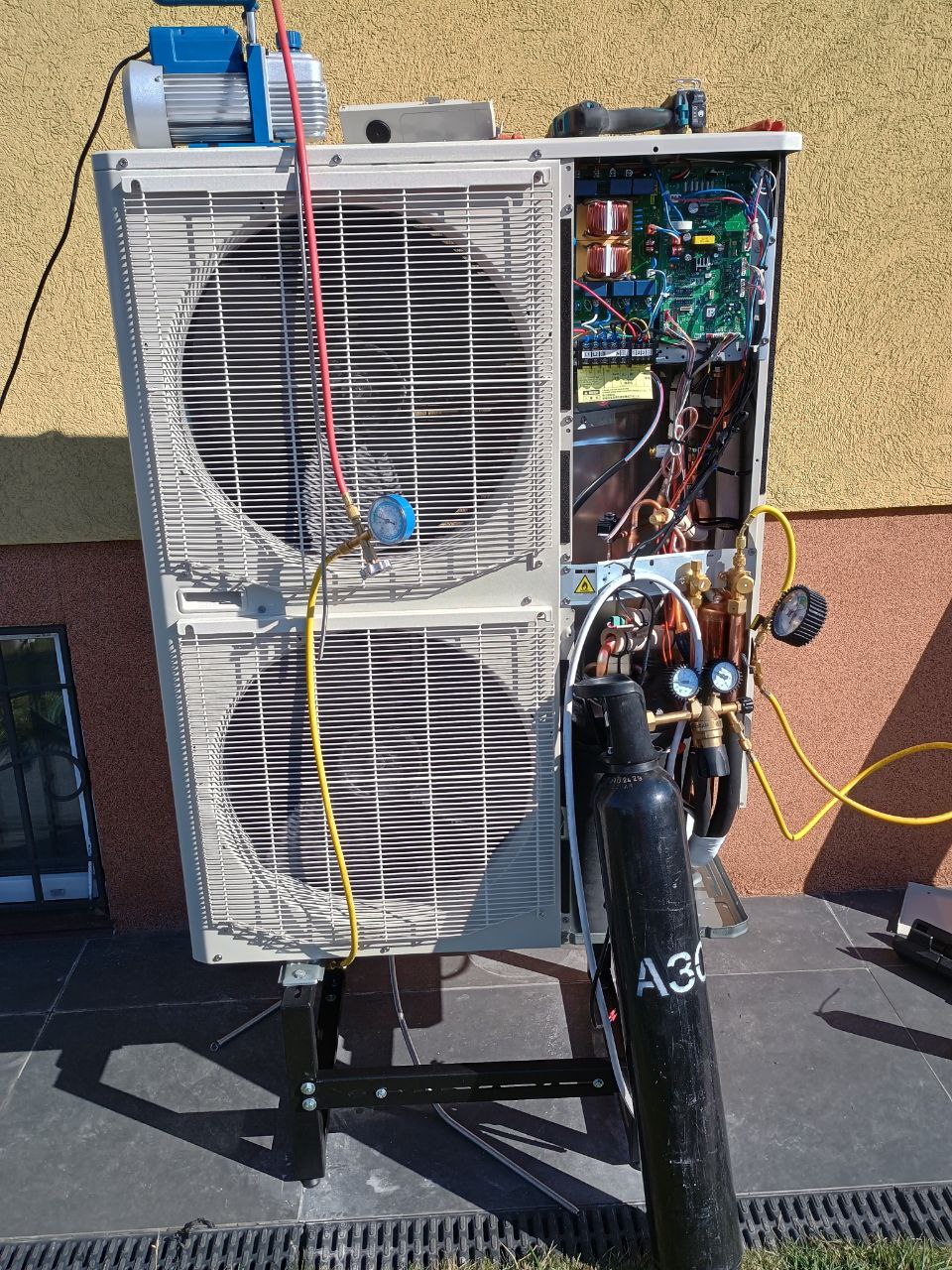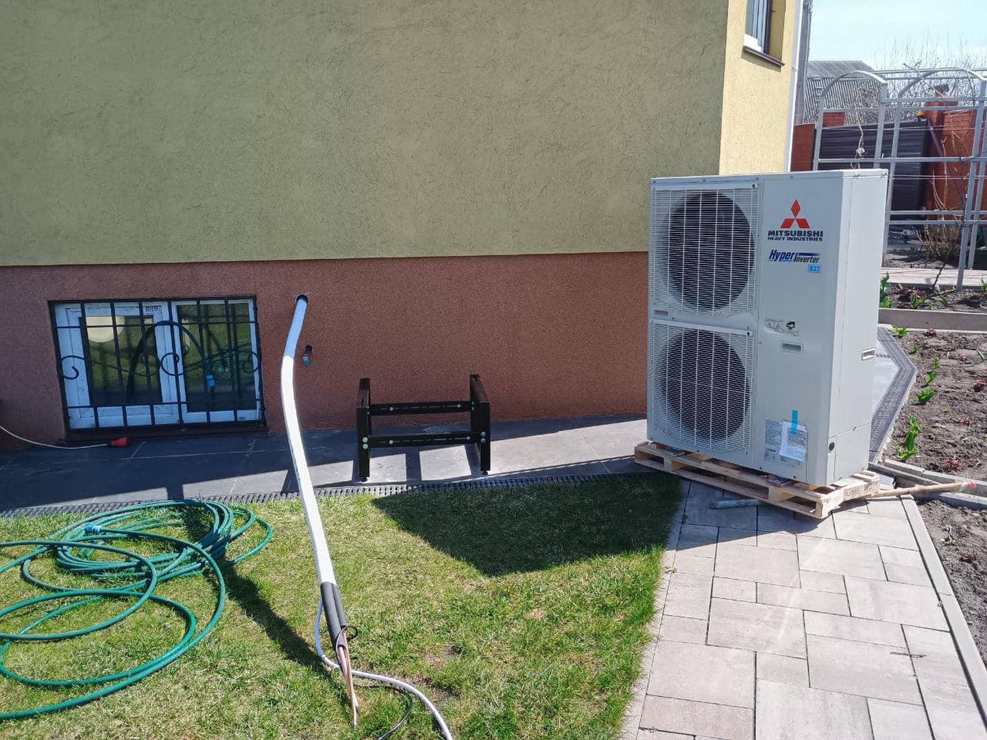 Монтаж наружного блока теплового насоса происходил в несколько ключевых этапов: