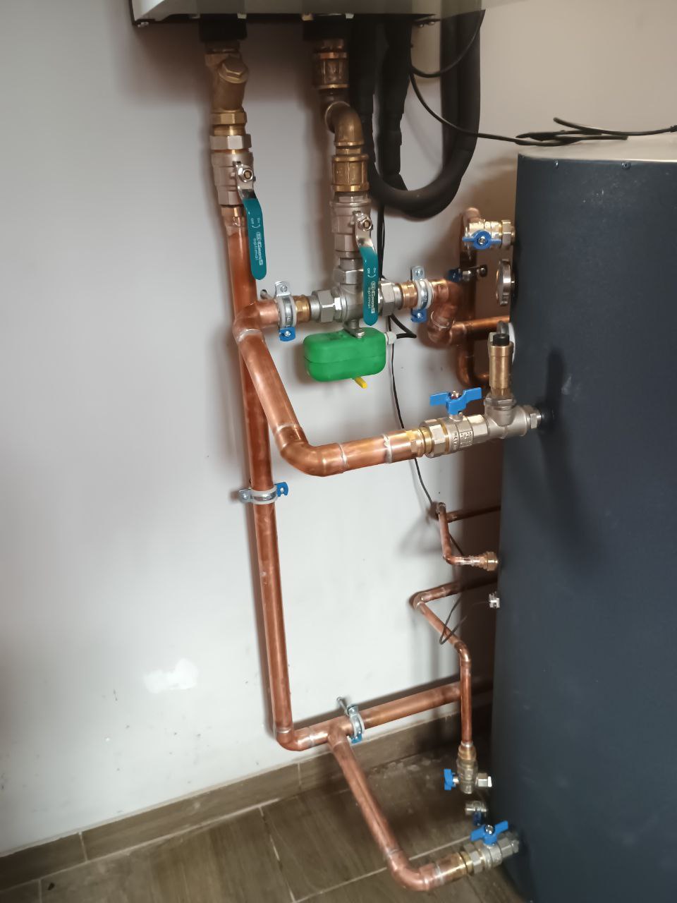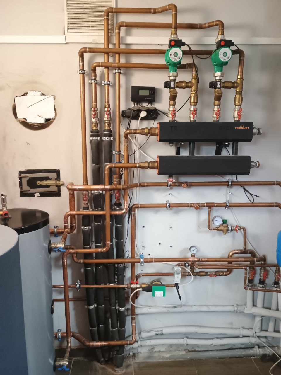 Система была собрана с использованием медных трубопроводов, которые отличаются своей прочностью и долговечностью. Все соединения выполнены с точностью — аккуратно, прочно и с учетом будущего удобного обслуживания.