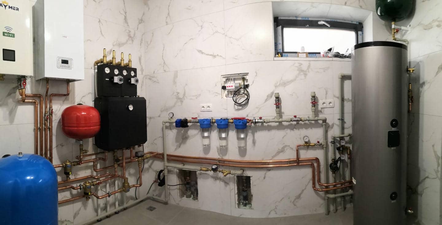Внутренний блок теплового насоса Raymer RAY-18DS1 EVI был установлен в котельной дома возле электрокотла, чтобы было удобно врезаться в уже проложенные трубы. Благодаря компактному размещению внутри помещения, удалось сохранить пространство и обеспечить оптимальную циркуляцию воздуха.