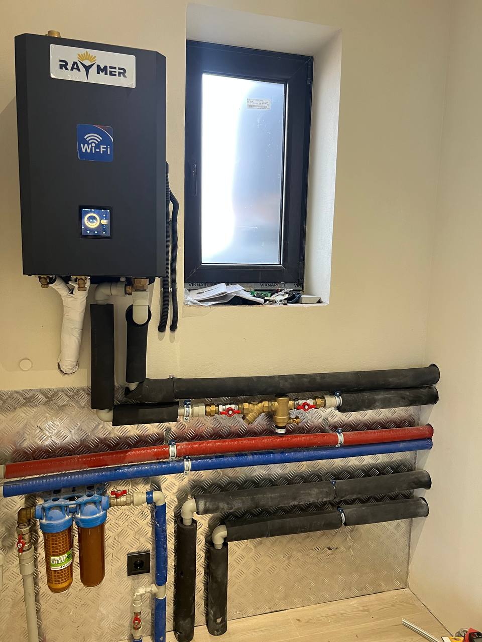 В рамках реализации проекта по монтажу теплового насоса Raymer RAY-15DS2-EVI в доме площадью 170 м² особое внимание было уделено грамотной интеграции гидромодуля в уже существующую систему отопления. Так как дом оснащён радиаторной системой, работавшей на базе электрокотла, было принято решение оставить электрокотёл в системе в качестве резервного источника тепла. Это позволяет обеспечить дополнительную надёжность отопления в случае экстремально низких температур или проведения технического обслуживания основного оборудования.