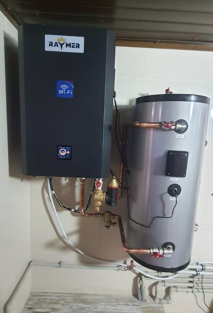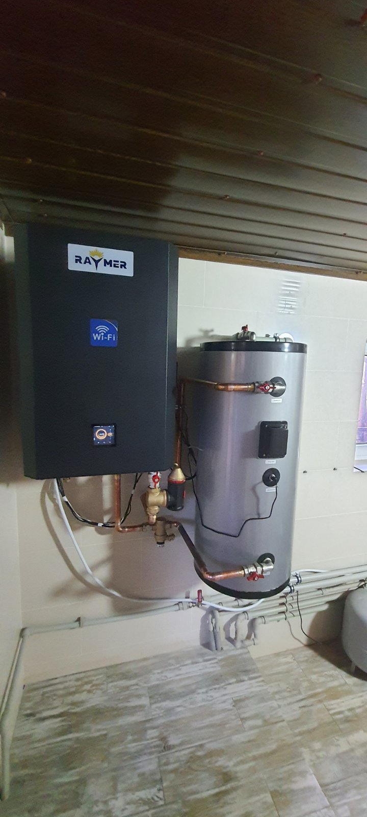 Взвесив все нюансы существующей системы, утепление дома, расположение коммуникаций и перепады высот системы, так как дом двухэтажный, было рекомендовано установить тепловой насос Raymer RAY-32DS2-EVI, который имеет супермощный компрессор и вентиляторы, способные обеспечивать отопление на большие площади, а также горячее водоснабжение и охлаждение летом при необходимости.
