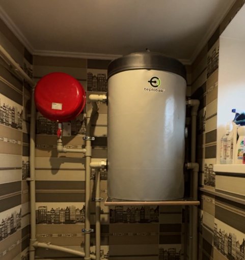 В котельной был смонтирован бак-накопилитель «Теплобак» объемом 80 литров, который выполняет функцию буферной емкости для системы отопления. Емкость установлена в подвесном виде на прочных кронштейнах, что позволило сэкономить пространство в помещении и обеспечить удобный доступ к гидромодулю и коммуникациям.
