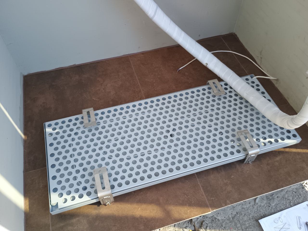 Также был предусмотрен водоотводный канал, который эффективно отводит конденсат и талую воду от внешнего блока, что предотвращает подтопление площадки и дополнительное намерзание вокруг оборудования.
