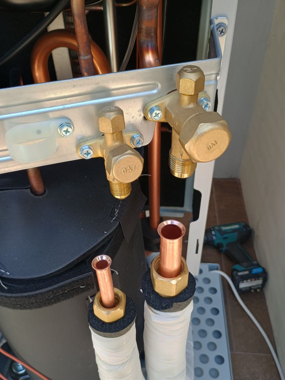 Фреоновые магистрали между внешним блоком и гидромодулем были проложены с соблюдением всех норм – с применением качественной теплоизоляции для предотвращения теплопотерь и конденсатообразования. Медные трубопроводы были спаяны с использованием инертного газа, что гарантирует герметичность системы и защиту от окисления.