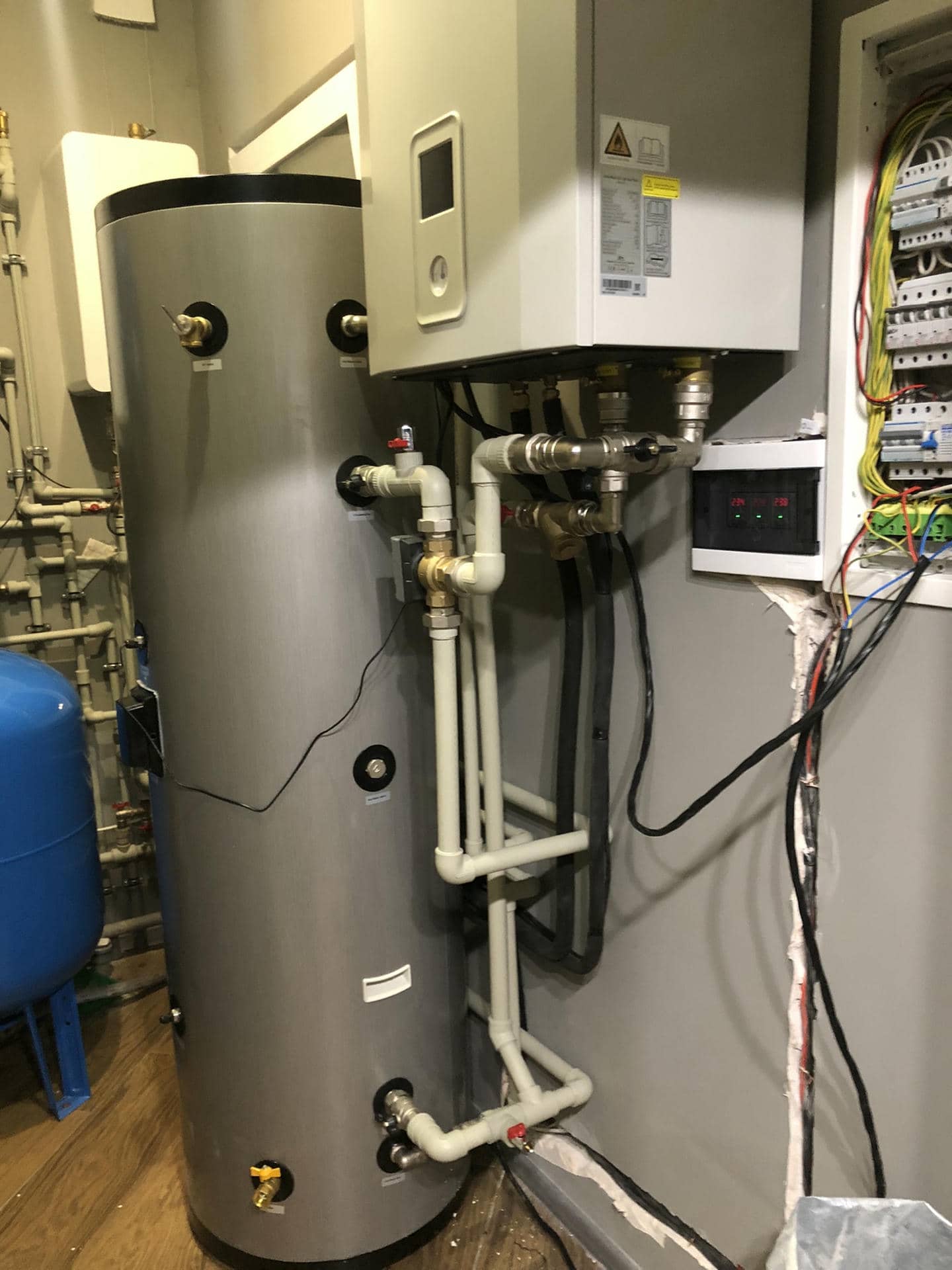 Внутренний блок теплового насоса Cooper&Hunter CH-HP16SIRM-E был установлен в котельной у входа, где уже находится электрокотел и бойлер, который когда-то обеспечивал горячее водоснабжение.