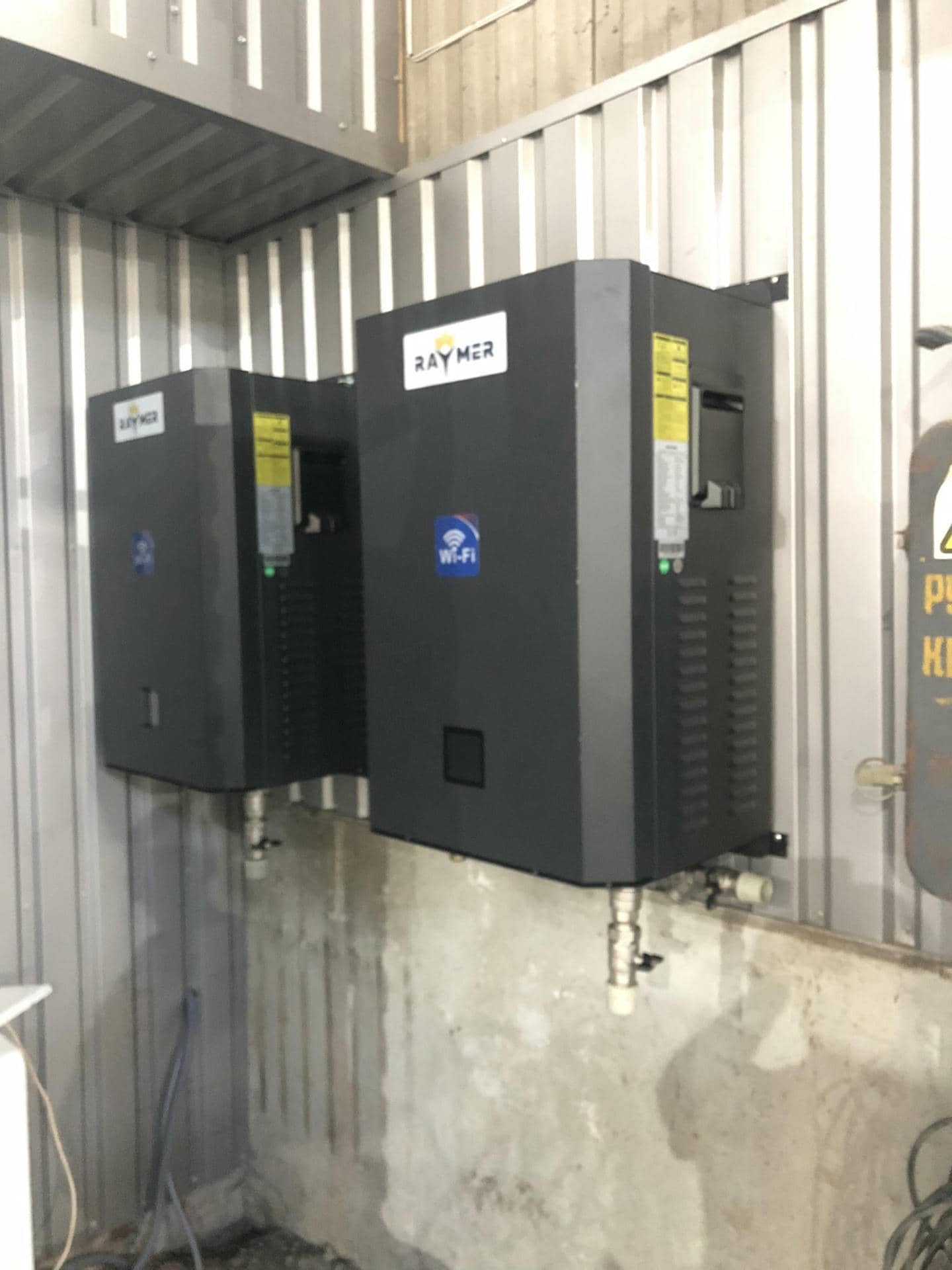 При реализации проекта по организации отопления и охлаждения производственного цеха площадью 600 кв. м было установлено два наружных блока тепловых насосов Raymer RAY-24DS2-EVI (380V) black.