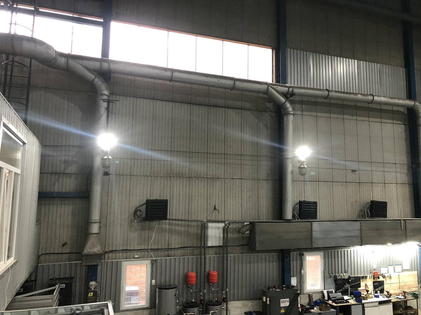 Для эффективного распределения тепла в производственном помещении был использован комплект воздушно-отопительного прибора HC45-3S с поворотным кронштейном и трехступенчатым регулятором скорости вентилятора.