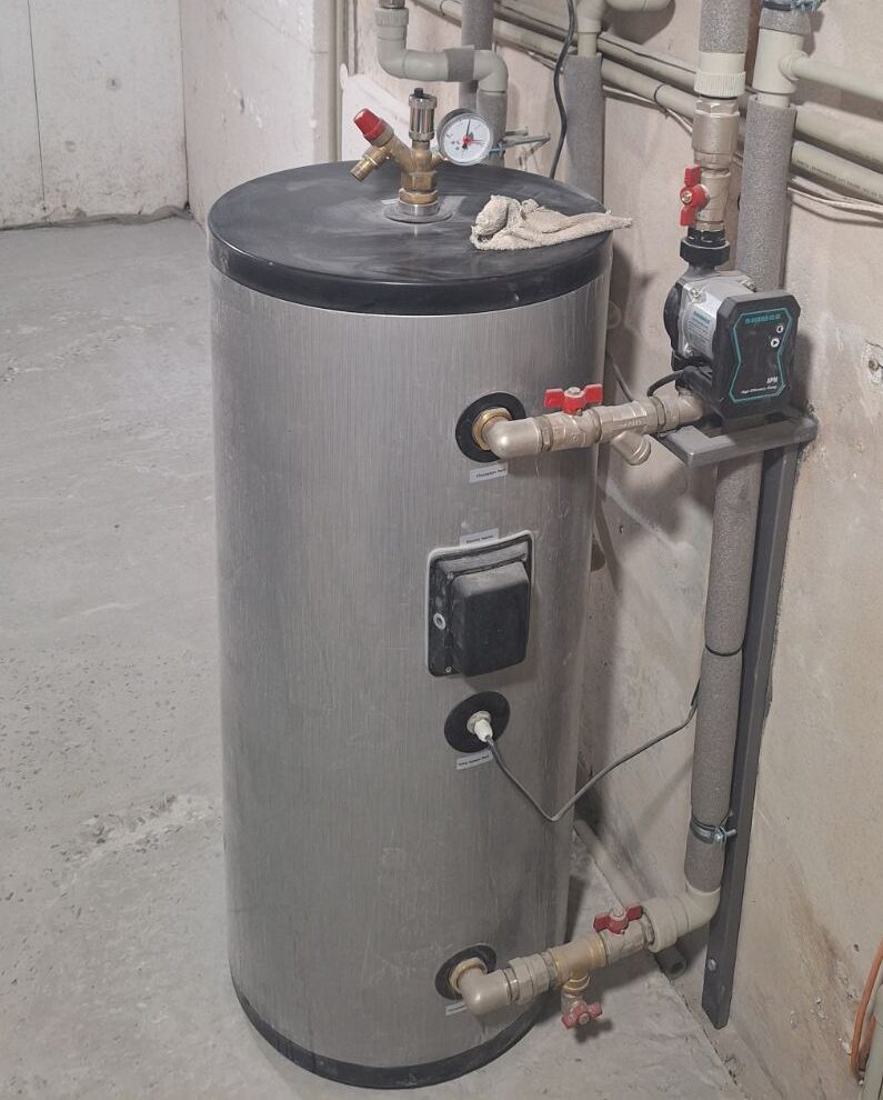 Для обеспечения стабильной и эффективной работы системы отопления в котельной была смонтирована буферная емкость Raymer IMP объемом 100 литров. Этот элемент выполняет важную функцию аккумулирования тепла, что позволяет уменьшить количество пусков и остановок теплового насоса, продлевая срок службы и повышая энергоэффективность.