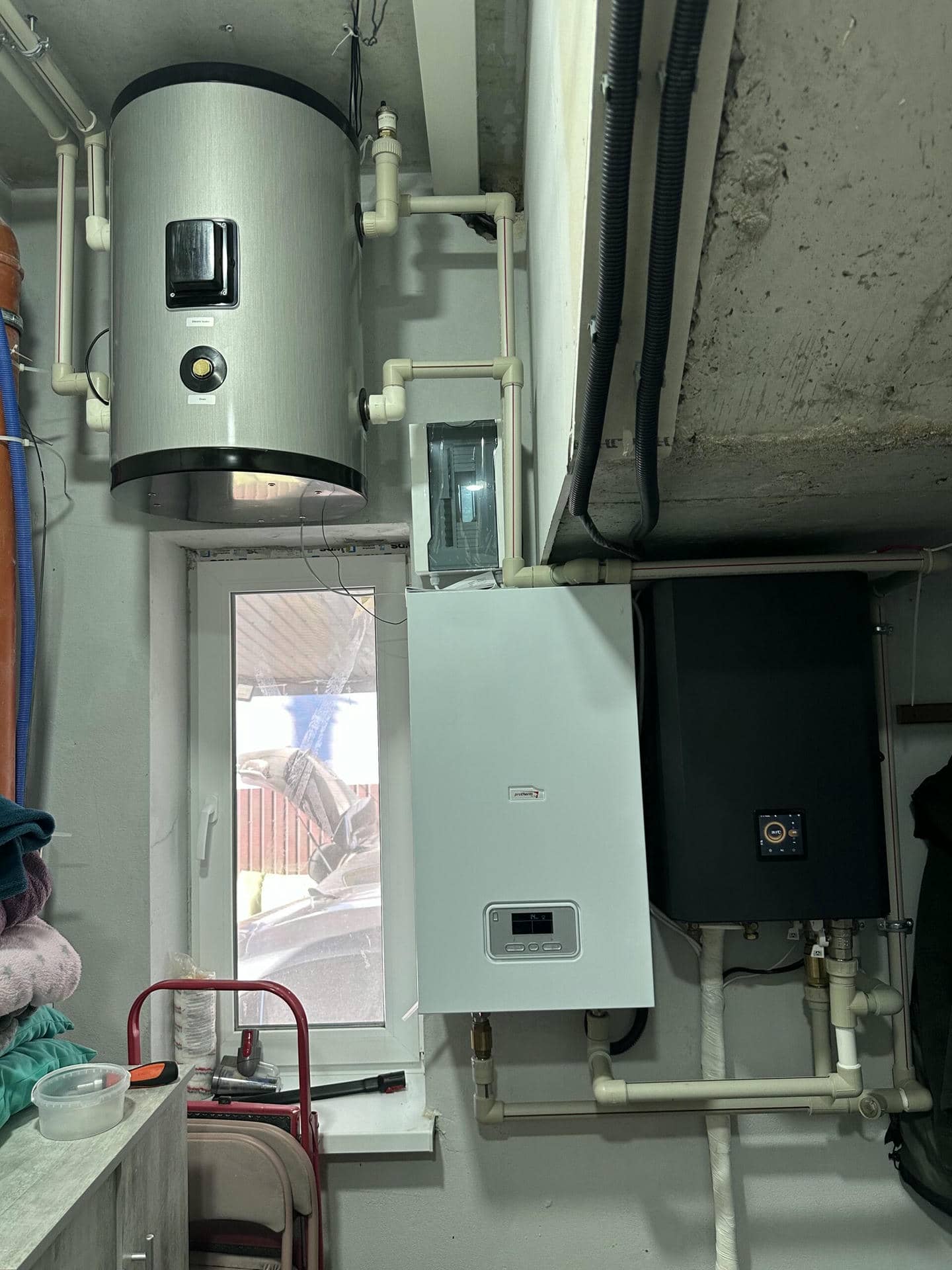 Так, как места в котельной очень мало, буферную емкость решено установить над окном так, чтобы было удобно смонтировать соединения подачи теплоносителя.