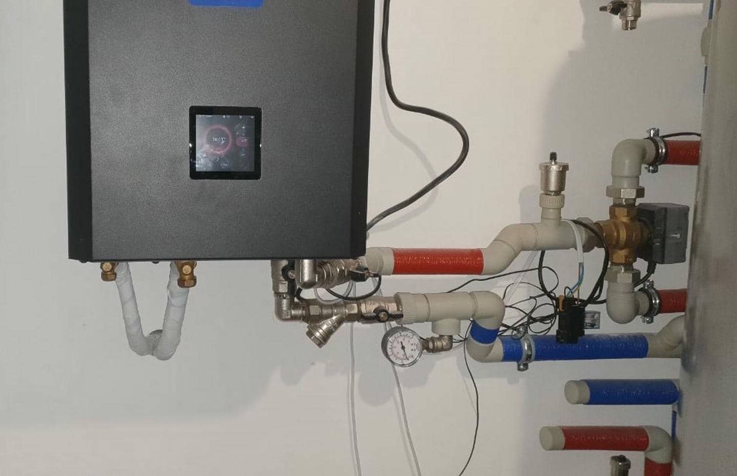 В этом проекте гидромодуль теплового насоса Raymer был установлен на стене котельной, что обеспечивает компактное размещение и удобство обслуживания. Подключение к системе отопления выполнено с помощью полипропиленовых труб с теплоизоляцией, что минимизирует тепловые потери и гарантирует эффективную работу оборудования.