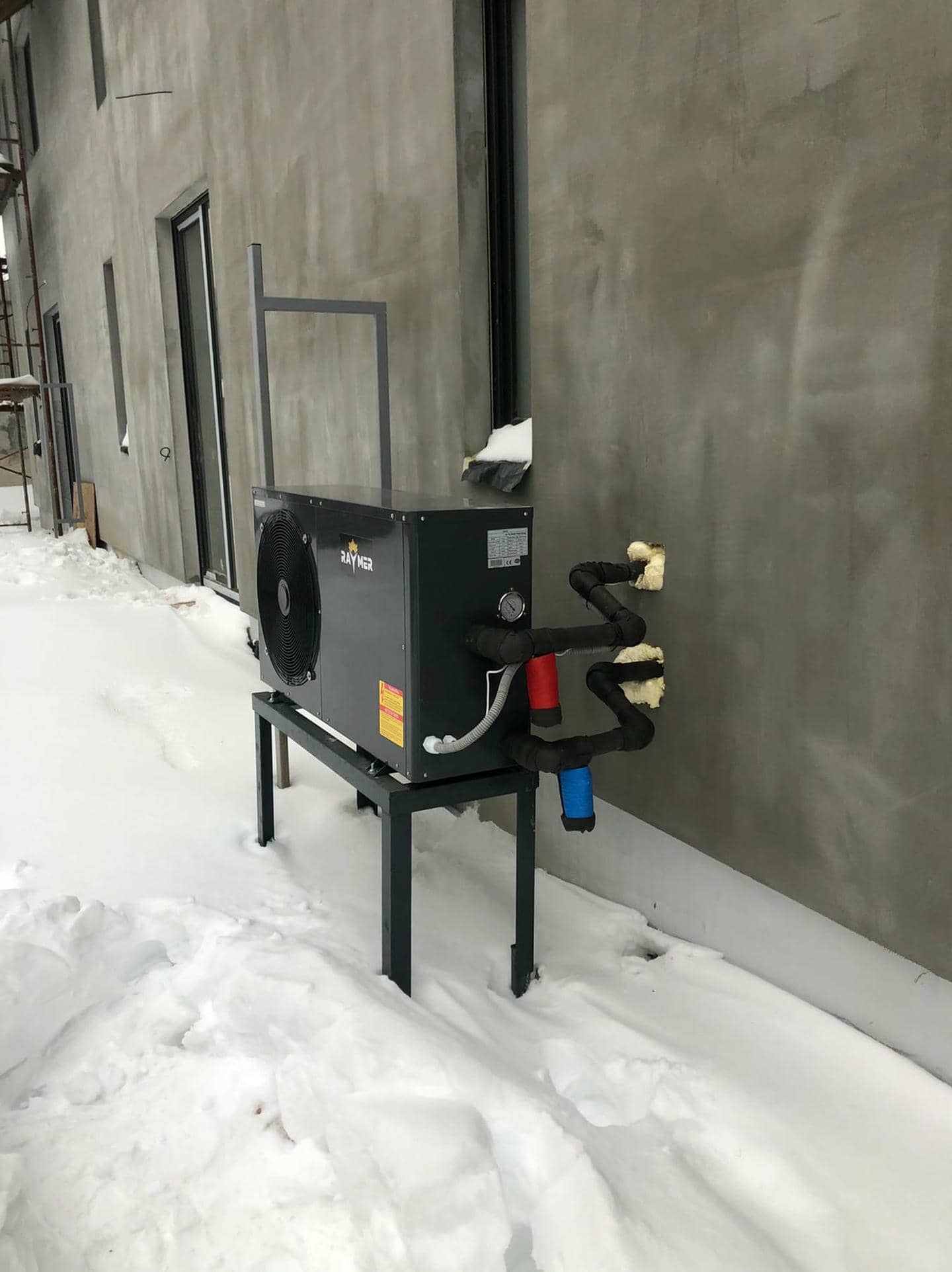 1. Установка теплового насоса воздух-вода Raymer FA-03 на 11 кВт (моноблочный тип) а также подключение в систему.