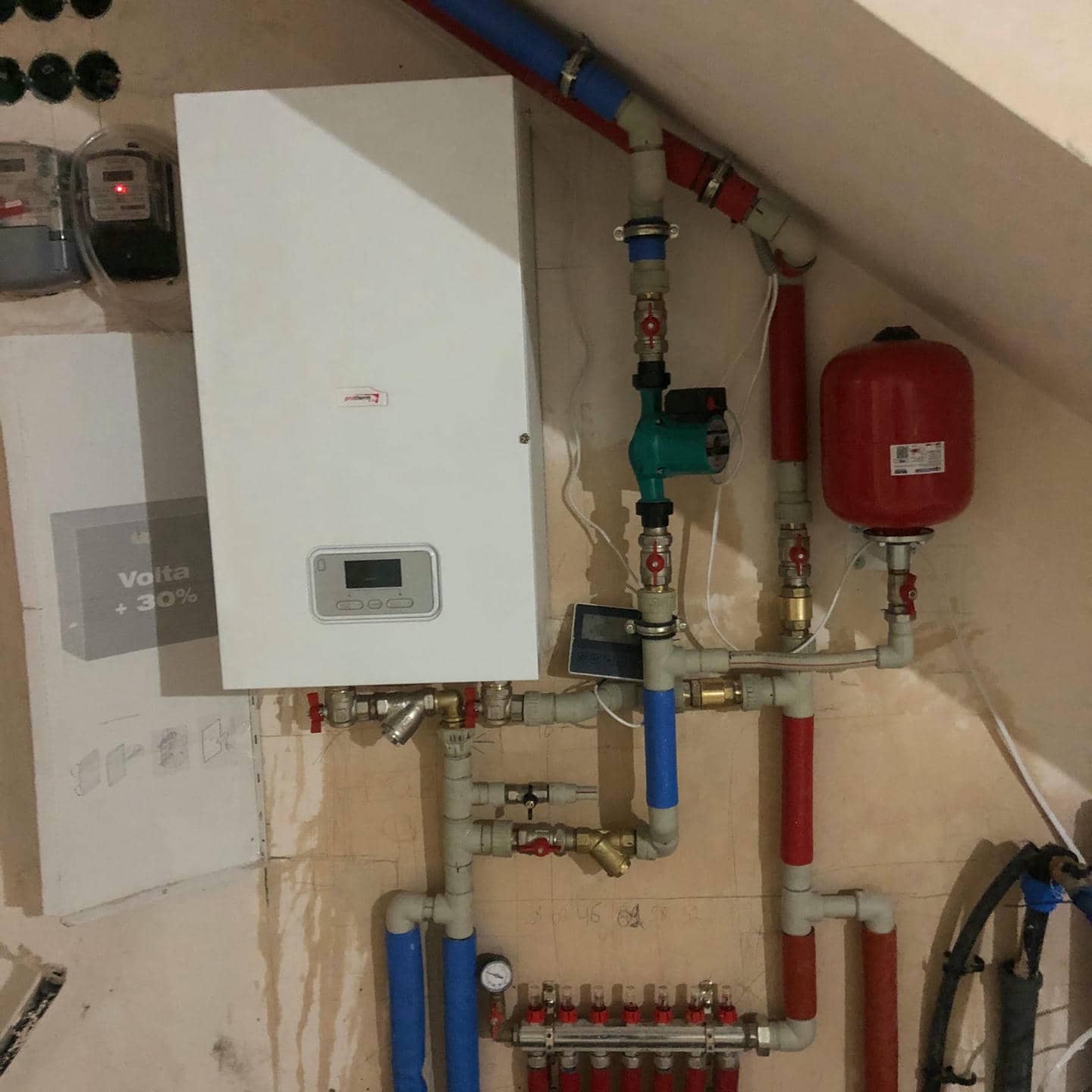 • Альтернативным источником отопления у покупателя уже был электрический котел на 9кВт. Поэтому в существующую систему отопления впаяли тепловой насос для повышенной экономии электроэнергии.