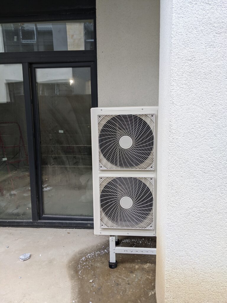 Наружный блок теплового насоса установили на надежное основание с антивибрационными опорами, обеспечивающими стабильность конструкции и снижающими вибрации во время работы. Место для монтажа выбрали с учетом удобства обслуживания и максимальной эффективности системы.