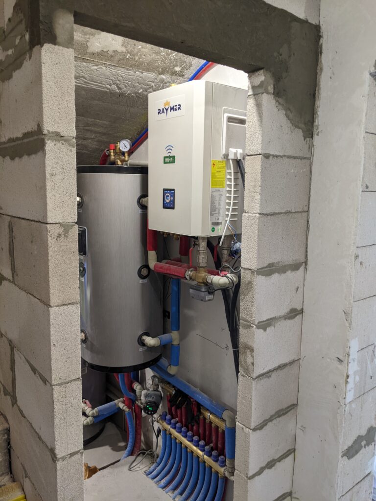 Учитывая все особенности спроектированной отопительной системы, совместимость с теплым полом было принято решение установить тепловой насос Raymer RAY-15DS1-EVI, который способен работать при минусовых температурах до -30°C, а также может обеспечивать горячее водоснабжение и охлаждение летом.
