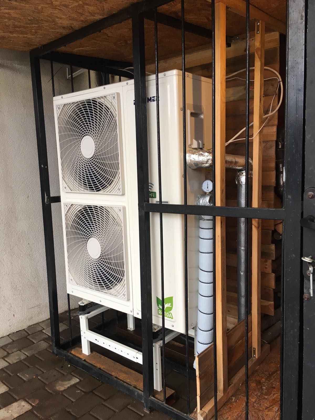 Наружный блок теплового насоса был установлен на надежном фундаменте, который обеспечивает устойчивость и защиту от воздействия окружающей среды. Было учтено расположение наружного блока для обеспечения оптимального функционирования и удобства обслуживания.