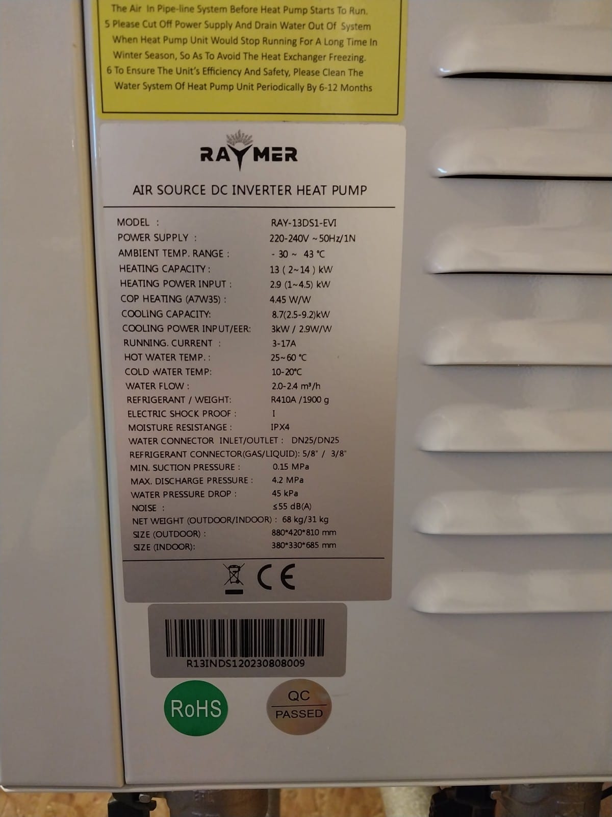 - Установка теплового насоса Raymer RAY-13DS1-EVI (220В) 13 кВт а также монтаж котельного оборудования.