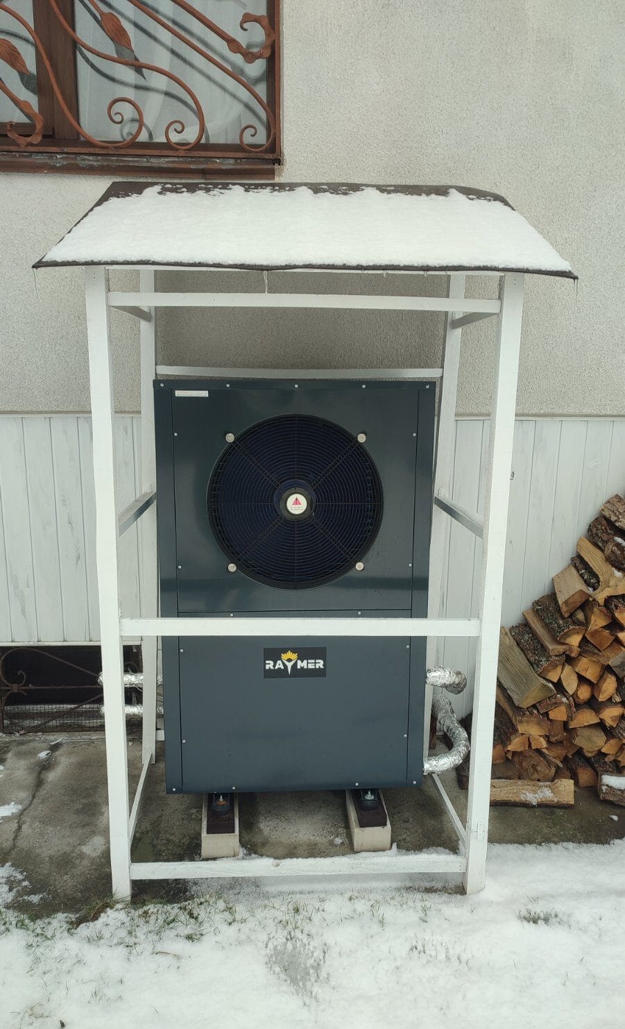 Установка теплового насоса: Тепловой насос воздух-вода Raymer FA-04 мощностью 15 кВт был установлен в центральную систему отопления частного дома. Это включало в себя размещение насоса в специально подготовленном помещении, соединение его с водяной системой отопления и электросетью.
