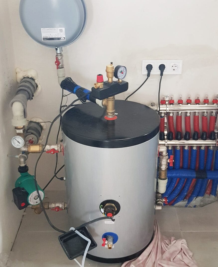 Для увеличения эффективности системы и обеспечения резервного источника тепла был установлен нержавеющий бак-накопитель Raymer IMP 60. К нему подключили электротен на 3 кВт, который обеспечивает быстрый прогрев воды и всей системы в случае необходимости.