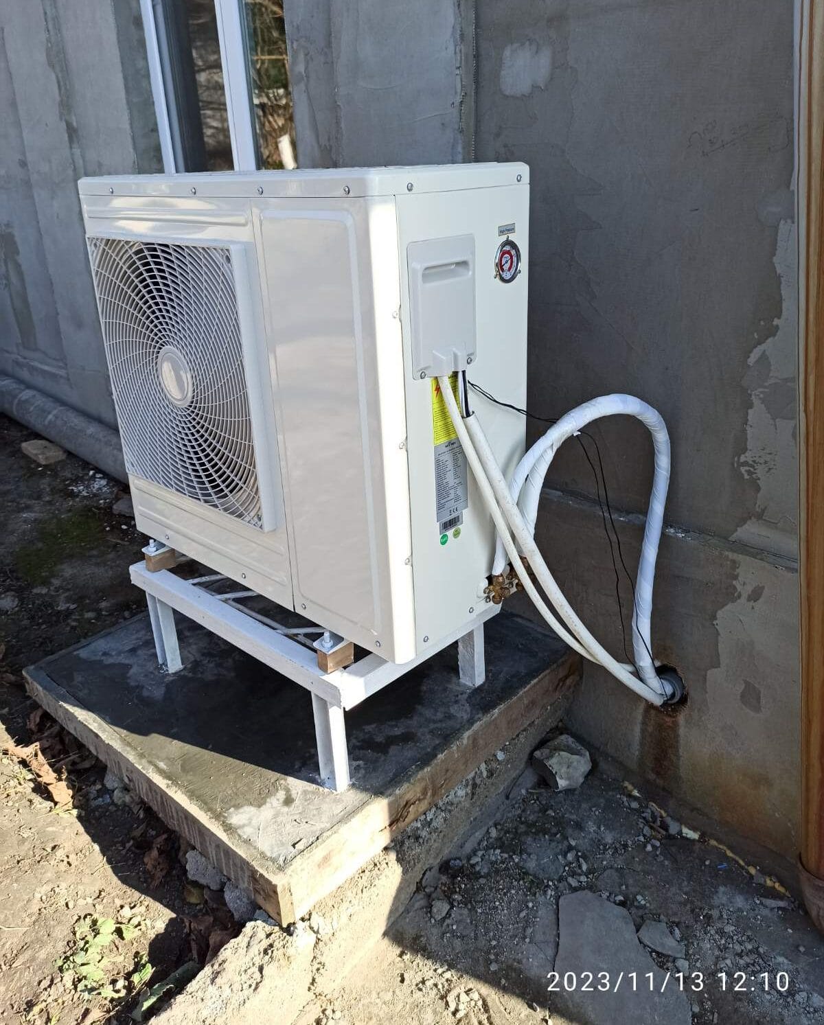 Работы по установке сплит теплового насоса воздух-вода Raymer RAY-10DS1-EVI на 10 кВт были начаты с тщательного планирования. Первым шагом стал выбор оптимального места для установки внешнего блока насоса, чтобы обеспечить максимальную эффективность и легкий доступ для обслуживания. Внешний блок был установлен таким образом, чтобы минимизировать тепловые потери и обеспечить эффективный обмен теплом.