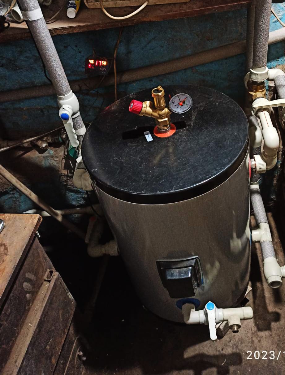 Кроме установки самого теплового насоса, для обеспечения дополнительной надежности и комфорта в холодные периоды был установлен нержавеющий бак-накопитель Raymer IMP 60 на 60 литров и подключен циркуляционный насос Raymer RS25/1. Эти элементы системы способствуют более быстрому и эффективному прогреву помещения, а также обеспечивают запас горячей воды.