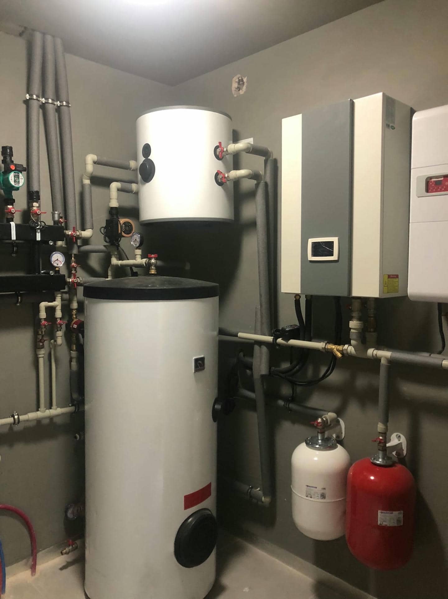Выбор пал на тепловой насос Raymer RAY-13DS1 на 13 кВт благодаря его высокой энергоэффективности и способности обеспечивать как отопление дома, так и нагрев воды. Для оптимизации работы системы и повышения ее эффективности был установлен буферный бак объемом 60 литров и бак косвенного нагрева (бойлер) на 250 литров.